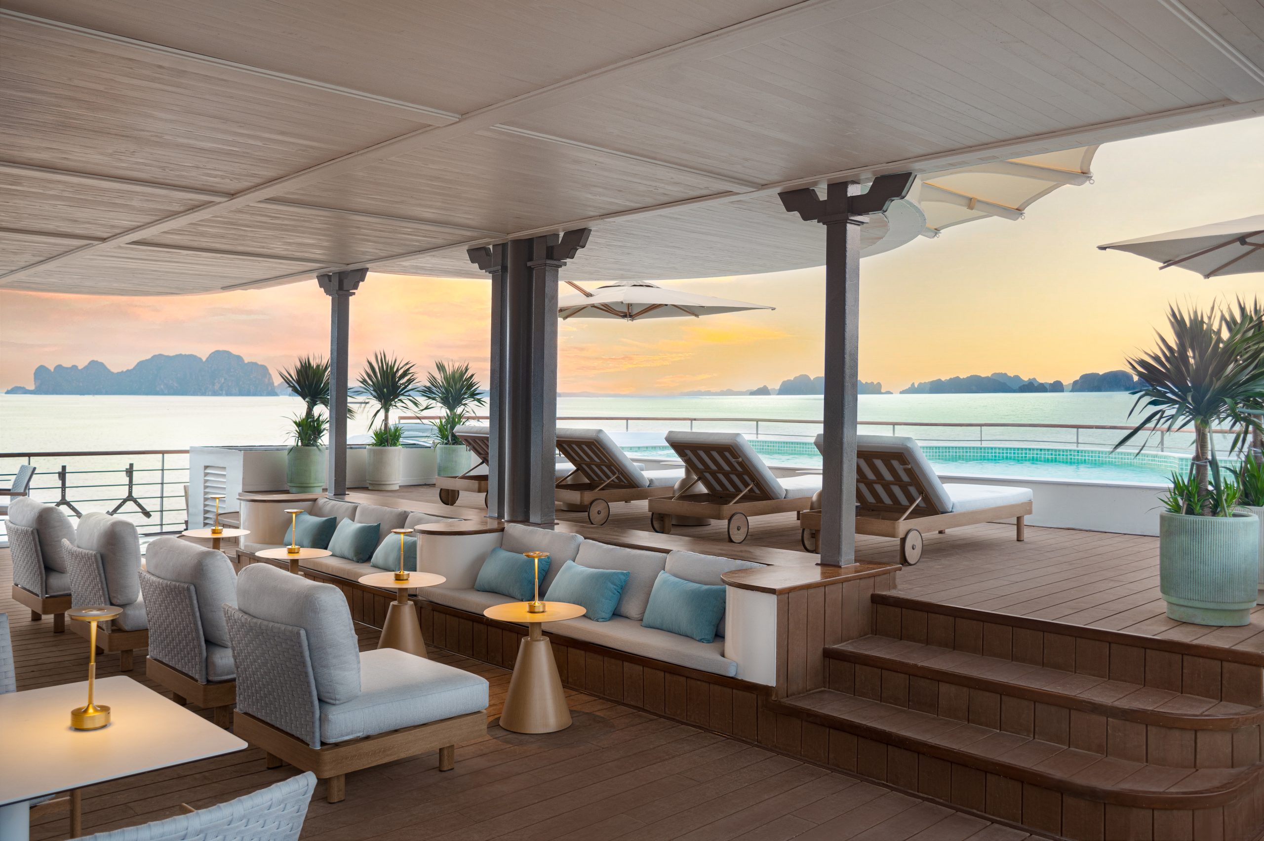 Experience the quiet artistry of a traditional Vietnamese tea ceremony on the sundeck, where each gesture honors centuries of cultural heritage. As you sip, watch Halong Bay unfold into a golden canvas at dusk, a moment where ritual meets reverence.